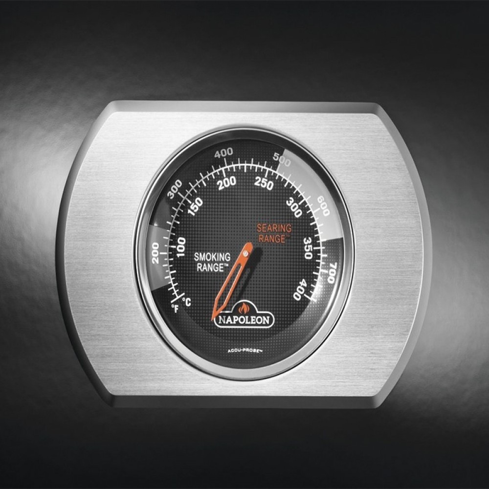 Λάβετε τον απόλυτο έλεγχο της θερμοκρασίας στο μπάρμπεκιου με το θερμόμετρο υψηλής ακρίβειας που βρίσκεται ενσωματωμένο στο καπάκι της Napoleon Rogue