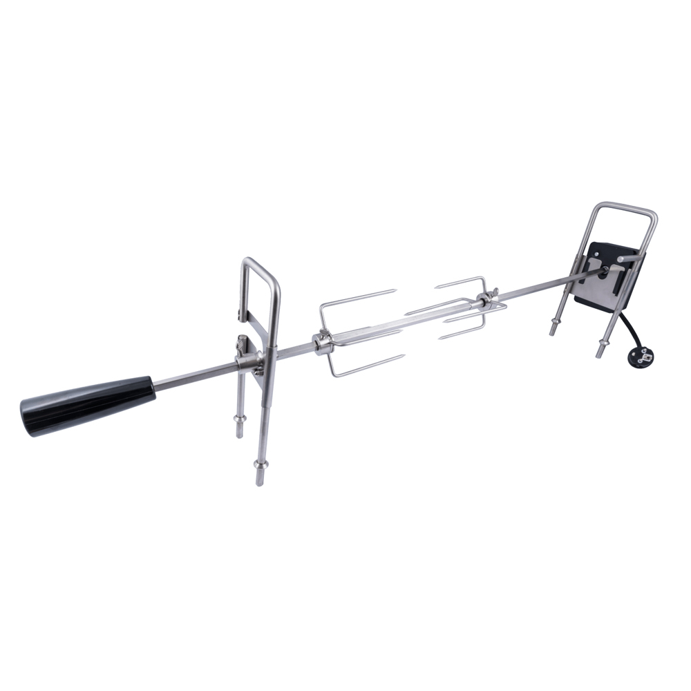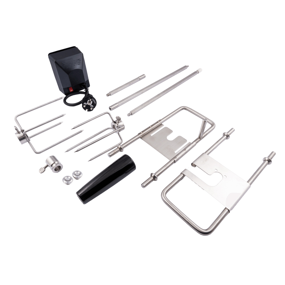 Το All-Star ανταποκρίνεται πραγματικά στο όνομά του – και το ίδιο ισχύει και για τα αξεσουάρ του. Με το All-Star rotisserie κατασκευασμένο από ανθεκτικό ανοξείδωτο ατσάλι, μπορείτε να μεγαλώσετε με το μπάρμπεκιου σας – ακόμα και όταν ο χώρος είναι εξαιρετικός. Χάρη στον ενσωματωμένο κινητήρα, η σούβλα περιστρέφεται συνεχώς, ώστε το φαγητό σας να μπορεί να μαγειρεύεται ομοιόμορφα. Αυτό το rotisserie ταιριάζει απόλυτα στο All-Star Gas ή στο All-Star Electric.